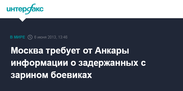 Москва требует от Анкары информации о задержанных с зарином боевиках