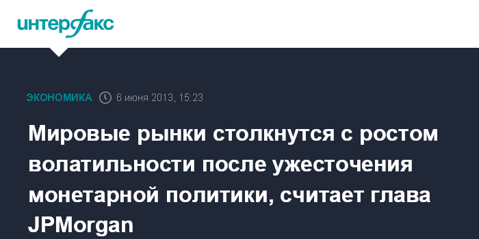 Мировые рынки столкнутся с ростом волатильности после ужесточения монетарной политики, считает глава JPMorgan
