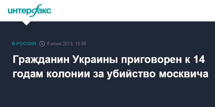 Москва. 6 июня. INTERFAX.RU - Московский городской суд приговорил гражданина Украины к 14 годам колонии строгого режима за ограбление и убийство москвича, уснувшего в машине, сообщаил в четверг сайт столичной прокуратуры.