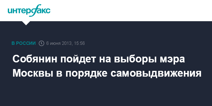 Собянин пойдет на выборы мэра Москвы в порядке самовыдвижения