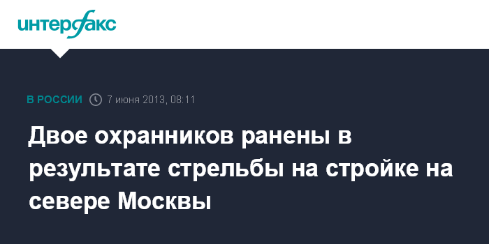 Москва. 7 июня. INTERFAX.RU - Двое охранников ранены на стройке на севере столицы в результате стрельбы из травматического оружия, сообщили "Интерфаксу" в пресс-службе ГУ МВД России по Москве.