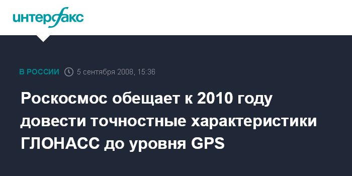 Роскосмос обещает к 2010 году довести точностные характеристики ГЛОНАСС до уровня GPS