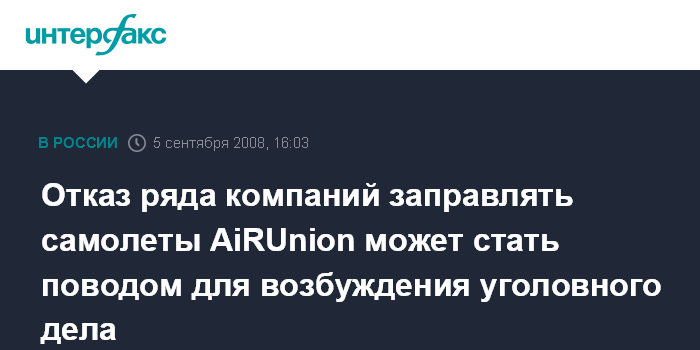 Отказ ряда компаний заправлять самолеты AiRUnion может стать поводом для возбуждения уголовного дела