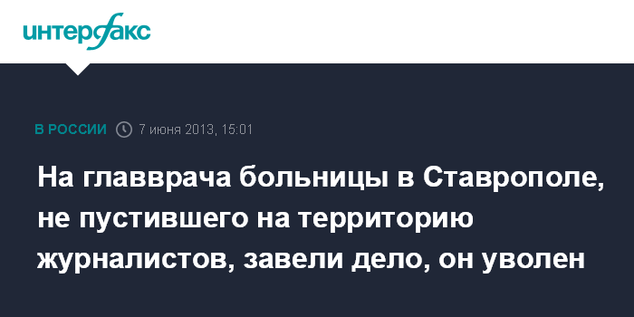 На главврача больницы в Ставрополе, не пустившего на территорию журналистов, завели дело, он уволен