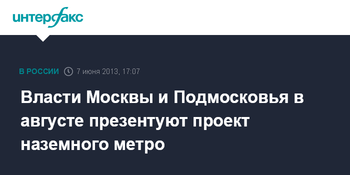 Власти Москвы и Подмосковья в августе презентуют проект наземного метро