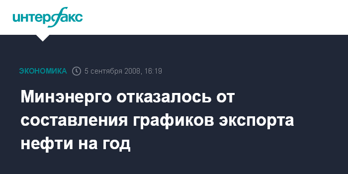 Москва. 5 сентября. INTERFAX.RU - Министерство энергетики РФ отказалось от составления экспортных графиков нефти на год, сообщил заместитель министра Станистав Светлицкий, выступая сегодня перед журналистами. Он также сказал, что Минэнерго готовит предложения о повышении цены отсечения налога на добычу полезных ископаемых (НДПИ) с $15 до $25 за баррель с 2010 года.
