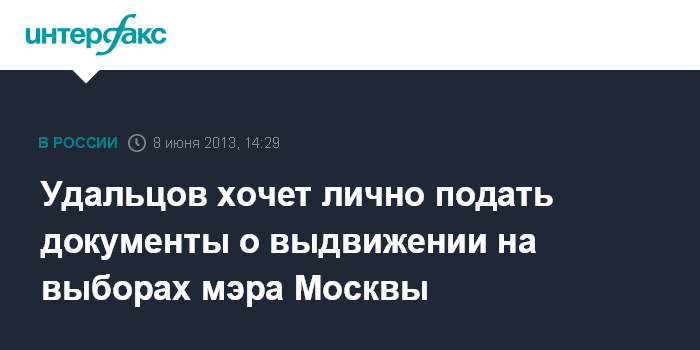 Москва. 8 июня. INTERFAX.RU - Находящийся под домашним арестом оппозиционер Сергей Удальцов хочет сам подать документы в Мосгоризбирком о выдвижении своей кандидатуры на выборах столичного градоначальника. "Сергей Удальцов направил в СК РФ ходатайство о возможности лично подать документы о выдвижении на выборах мэра Москвы", - говорится в записи, появившейся в субботу в Twitter оппозиционера. "Удальцов планирует подать документы в Мосгоризбирком на следующей неделе, после получения из СК РФ ответа на свое ходатайство", - отмечается в записи.