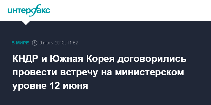 КНДР и Южная Корея договорились провести встречу на министерском уровне 12 июня