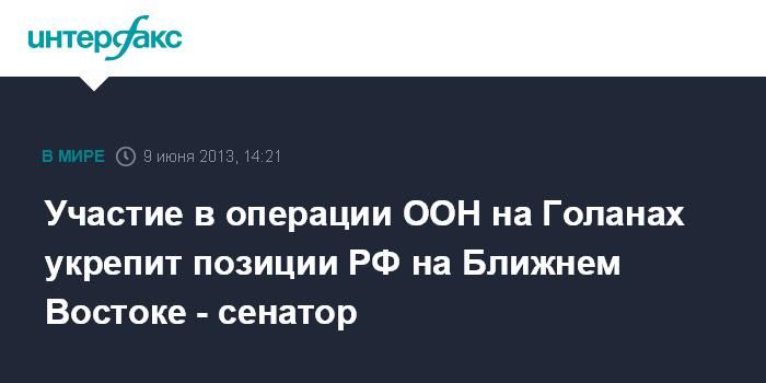 Участие в операции ООН на Голанах укрепит позиции РФ на Ближнем Востоке - сенатор