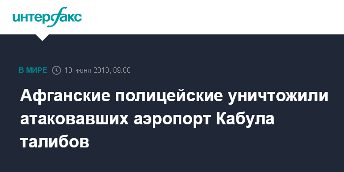 Кабул. 10 июня. INTERFAX.RU - Семеро талибов, атаковавших в понедельник утром аэропорт Кабула, убиты, объявили в министерстве внутренних дел Афганистана. По данным властей, пятеро боевиков погибли во время перестрелки с полицейскими, а еще двое привели в действие закрепленные на поясах бомбы. В МВД страны заявили, что в ходе боя ранения получили двое мирных жителей.