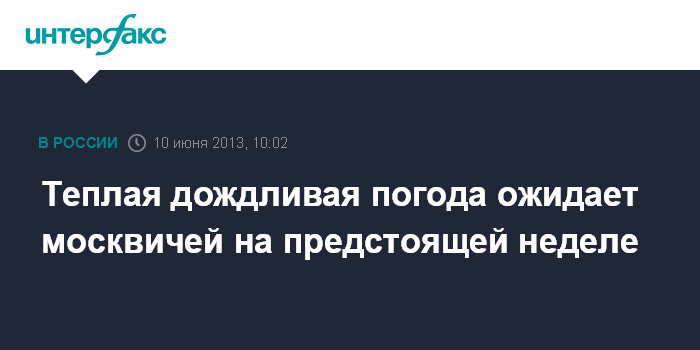 Москва. 10 июня. INTERFAX.RU - В столице установилась теплая дождливая погода с дневными температурами не выше +25, сообщили "Интерфаксу" в Гидрометеобюро Москвы и Московской области в понедельник. Всю предстоящую неделю в Москве и Московской области будет облачно с прояснениями. Вероятны кратковременные дожди, местами с грозами.