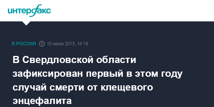 Екатеринбург. 10 июня. INTERFAX.RU - Первый летальный исход от укуса клеща зафиксирован в Свердловской области, сообщает пресс-служба регионального Роспотребнадзора в понедельник.
