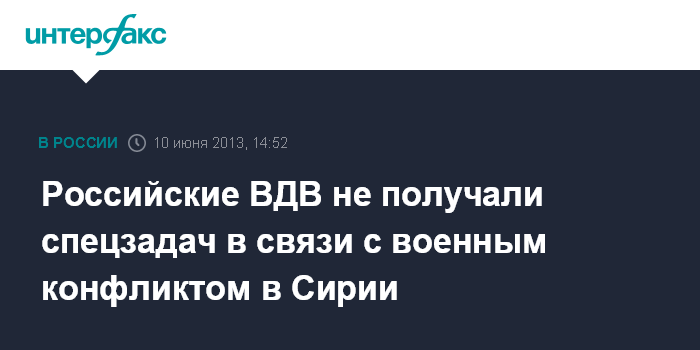 Российские ВДВ не получали спецзадач в связи с военным конфликтом в Сирии