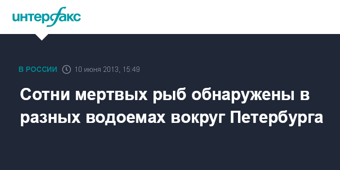 Санкт-Петербург. 10 июня. INTERFAX.RU - Прокуратура Санкт-Петербурга проводит проверку по факту массовой гибели рыбы в водных объектах города, сообщает пресс-служба ведомства в понедельник.