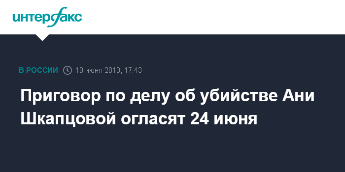 Приговор по делу об убийстве Ани Шкапцовой огласят 24 июня