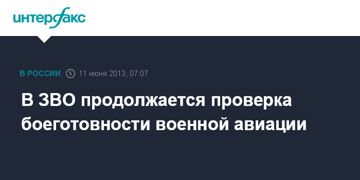 Москва. 11 июня. ИНТЕРФАКС - Проверка боевой готовности авиационных баз Западного военного округа (ЗВО), находящихся в Карелии, а также в Ленинградской и Мурманской областях, продолжилась во вторник, сообщили в оборонном ведомстве России.