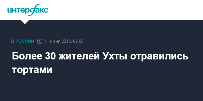 Москва. 11 июня. INTERFAX.RU - Более 30 человек попали в инфекционную больницу в республике Коми после употребления в пищу тортов, произведенных в одном из кафе города Ухта, сообщили "Интерфаксу" в пресс-центре МВД России.