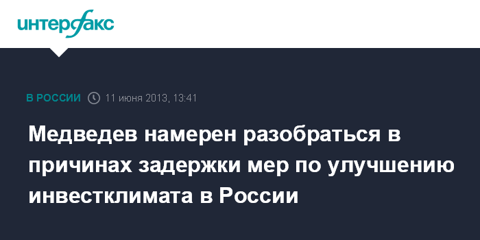 Медведев намерен разобраться в причинах задержки мер по улучшению инвестклимата в России