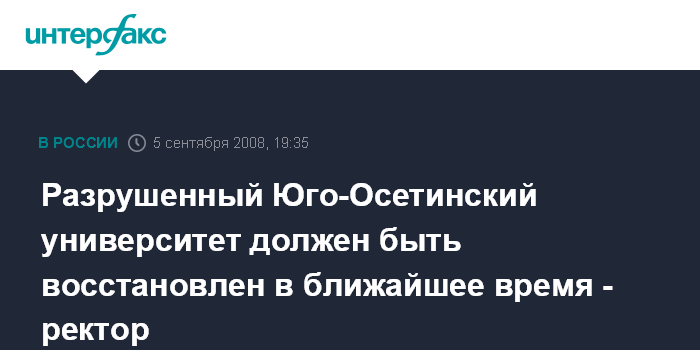 Разрушенный Юго-Осетинский университет должен быть восстановлен в ближайшее время - ректор