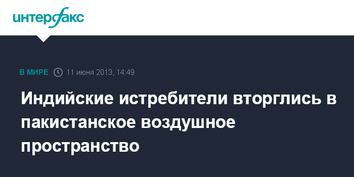 Исламабад. 11 июня. INTERFAX.RU - Два индийских истребителя нарушили границу с Пакистаном и вошли в воздушное пространство этой страны, говорится в заявлении ВВС Пакистана, опубликованном во вторник.