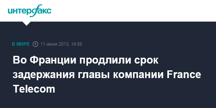 Париж. 11 июня. INTERFAX.RU - Судебные власти Франции на сутки продлили срок содержания под стражей главы крупнейшей французской телекоммуникационной компании France Telecom Стефана Ришара, задержанного в понедельник в рамках расследования по делу против главы МВФ Кристин Лагард, сообщила в понедельник французская газета Le Figaro.