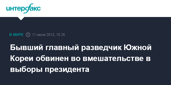 Сеул. 11 июня. INTERFAX.RU - Южнокорейская прокуратура предъявила обвинения во вмешательстве в последние президентские выборы бывшему главе Национальной разведывательной службы (НРС) страны Вон Се Хуну.