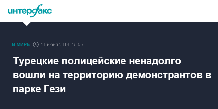 Стамбул. 11 июня. INTERFAX.RU - Несколько десятков сотрудников турецкой полиции во вторник вошли на территорию парка Гези, который считается оплотом антиправительственных демонстрантов, сообщает местное телевидение.