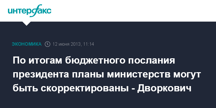 А.Дворкович подчеркнул, что по итогам бюджетного послания планы министерств могут быть скорректированы. "Думаю, что, исходя из услышанного, могут быть скорректированы планы министерств, которые должны быть доработаны в течение нескольких недель", - отметил вице-премьер.