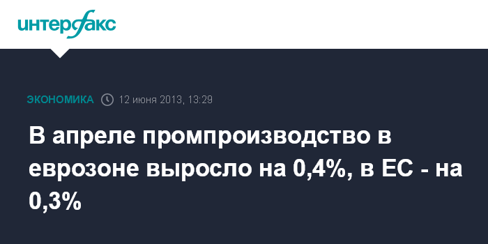 12 июня. FINMARKET.RU - Объем промышленного производства в еврозоне в апреле 2013 года вырос на 0,4% по сравнению с предыдущим месяцем, когда его рост составлял 0,9%, свидетельствуют данные Статистического управления Европейского союза (Eurostat).