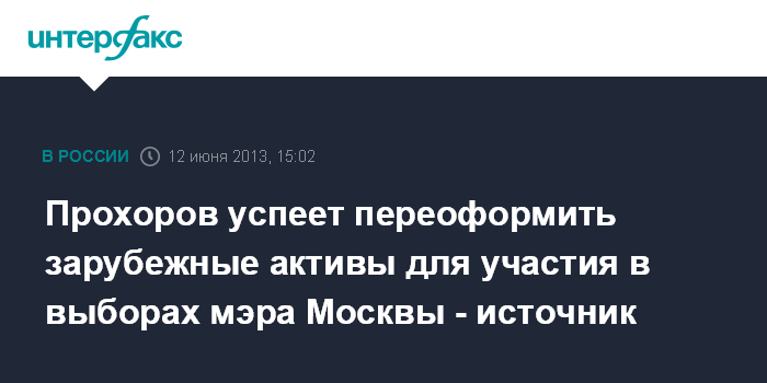 Прохоров успеет переоформить зарубежные активы для участия в выборах мэра Москвы - источник