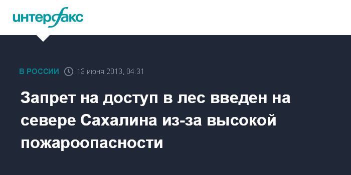 Южно-Сахалинск. 13 июня. ИНТЕРФАКС-ДАЛЬНИЙ ВОСТОК - Запрет на доступ в лес введен на севере Сахалина в Александровск-Сахалинском и Тымовском районах.