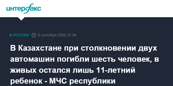 В Казахстане при столкновении двух автомашин погибли шесть человек, в живых остался лишь 11-летний ребенок - МЧС республики