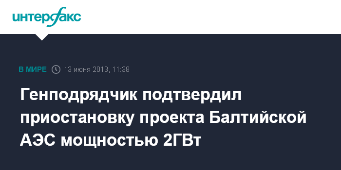 Генподрядчик подтвердил приостановку проекта Балтийской АЭС мощностью 2ГВт