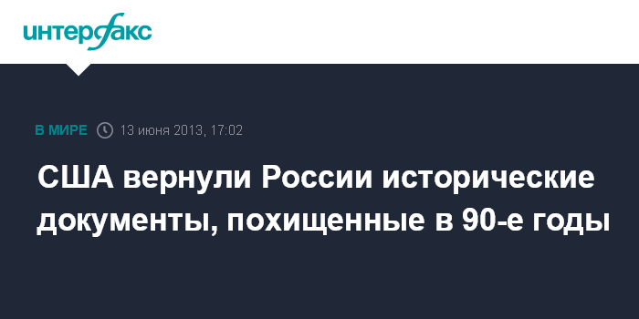 "Возвращение этих документов - это результат длительной работы в течение почти пяти лет. Эти документы были похищены из российского национального исторического архива в Петербурге, российского национального архива литературы искусства и российского военно-исторического архива в начале 90-х годов", - сказал американский посол.