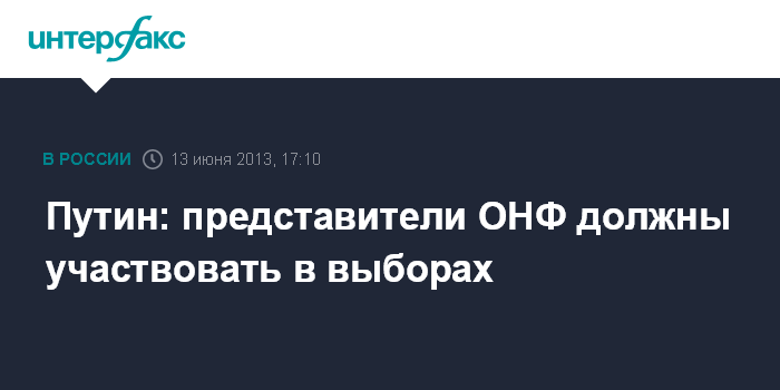 Путин: представители ОНФ должны участвовать в выборах