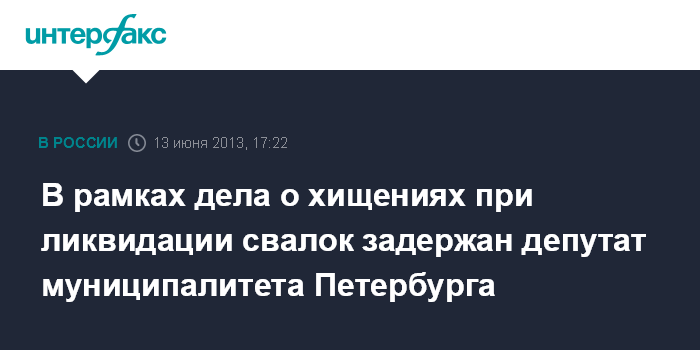 В рамках дела о хищениях при ликвидации свалок задержан депутат муниципалитета Петербурга