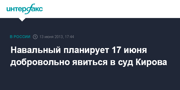 Навальный планирует 17 июня добровольно явиться в суд Кирова