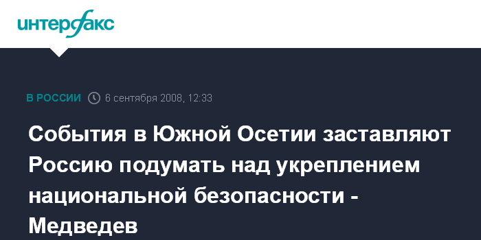 События в Южной Осетии заставляют Россию подумать над укреплением национальной безопасности - Медведев