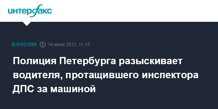 Санкт-Петербург. 14 июня. INTERFAX.RU- В Санкт-Петербурге полиция разыскивает водителя, который протащил за машиной остановившего его инспектора ДПС.