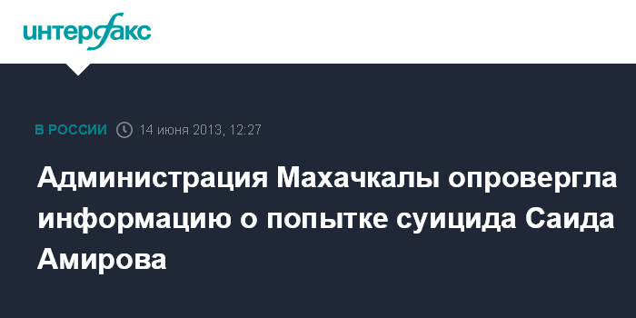 Махачкала. 14 июня. INTERFAX.RU - Начальник управления информационной политики и пресс-службы администрации Махачкалы Муртузали Муртузалиев опроверг информацию о попытке самоубийства находящегося в тюрьме Лефортово мэра Махачкалы Саида Амирова.