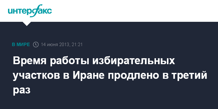 Тегеран. 14 июня. INTERFAX.RU - Министерство внутренних дел Ирана приняло решение продлить еще на час время работы избирательных участков для голосования на выборах президента страны.