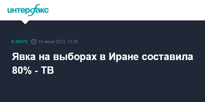 Тегеран. 15 июня. INTERFAX.RU - Около 80% имеющих право голоса иранцев отдали свои голоса на прошедших в пятницу президентских выборах, сообщает в субботу иранский телеканал "Пресс-ТВ" со ссылкой на информированные источники. Общее количество имеющих право голоса в Иране составляет около 50,5 млн человек.