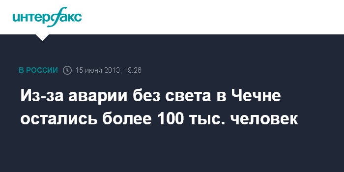Из-за аварии без света в Чечне остались более 100 тыс. человек