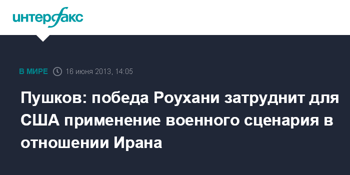 Пушков: победа Роухани затруднит для США применение военного сценария в отношении Ирана