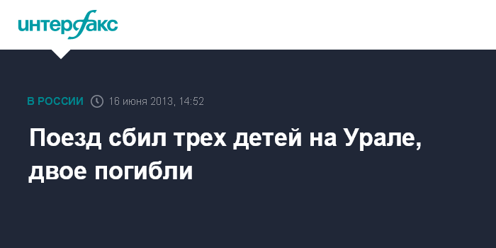 Москва. 16 июня. INTERFAX.RU - Возбуждено уголовное дело по факту гибели двух маленьких детей и травмирования еще одного на железной дороге в городе Кунгур, говорится в сообщении СКР, размещенном на сайте ведомства.