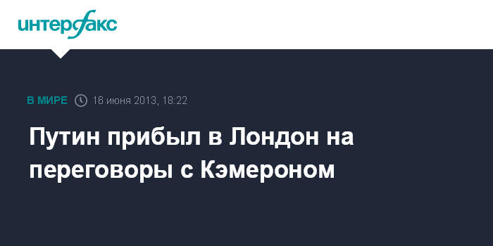 Лондон. 16 июня. INTERFAX.RU - Президент РФ Владимир Путин прибыл с рабочим визитом в Великобританию, где проведет переговоры с премьер-министром этой страны Дэвидом Кэмероном.