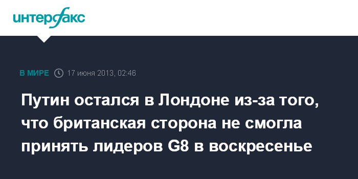 Путин остался в Лондоне из-за того, что британская сторона не смогла принять лидеров G8 в воскресенье