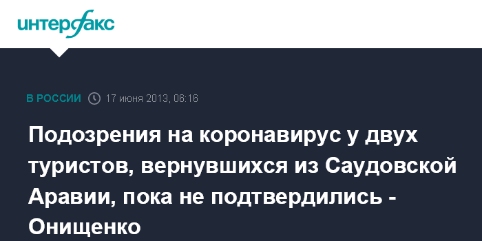 Ранее Г.Онищенко заявил, что после заболевания коронавирусом 30 человек умерли, большинство - в Саудовской Аравии. Случаи заболевания также зафиксированы в ОАЭ, Катаре, Иордании, Франции, Тунисе, Великобритании и Германии.