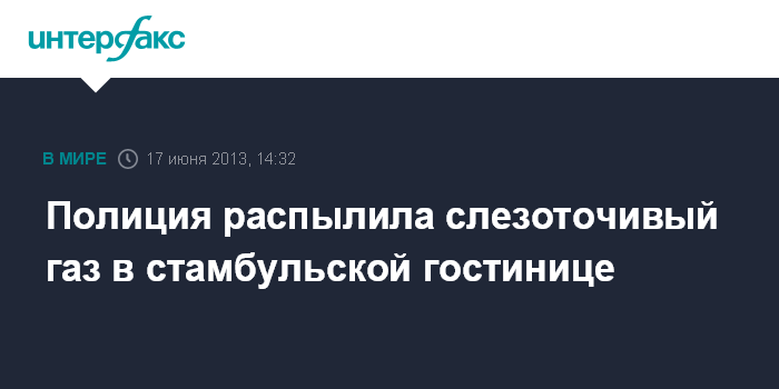 Москва. 17 июня. INTERFAX.RU - Полиция распылила слезоточивый газ в холле бизнес-отеля Divan в Стамбуле во время разгона протестующих с площади Таксим в минувшие выходные, сообщает телеканал NBC.