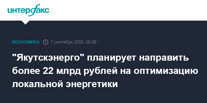 Якутск. 7 сентября. ИНТЕРФАКС - ОАО "Якутскэнерго" (дочерняя компания ОАО "РАО ЭС Востока") планирует в 2009-2013 гг. направить 22,4 млрд рублей на реализацию Программы оптимизации локальной энергетики (ПОЛЭ), сообщил генеральный директор ОАО "Якутскэнерго" Константин Ильковский, выступая на Якутском экономическом форуме "Мегапроекты России".